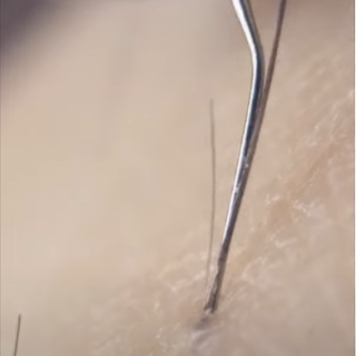 Anschließend wird das zerstörte Haar mühelos mit einer Pinzette herausgezogen.
